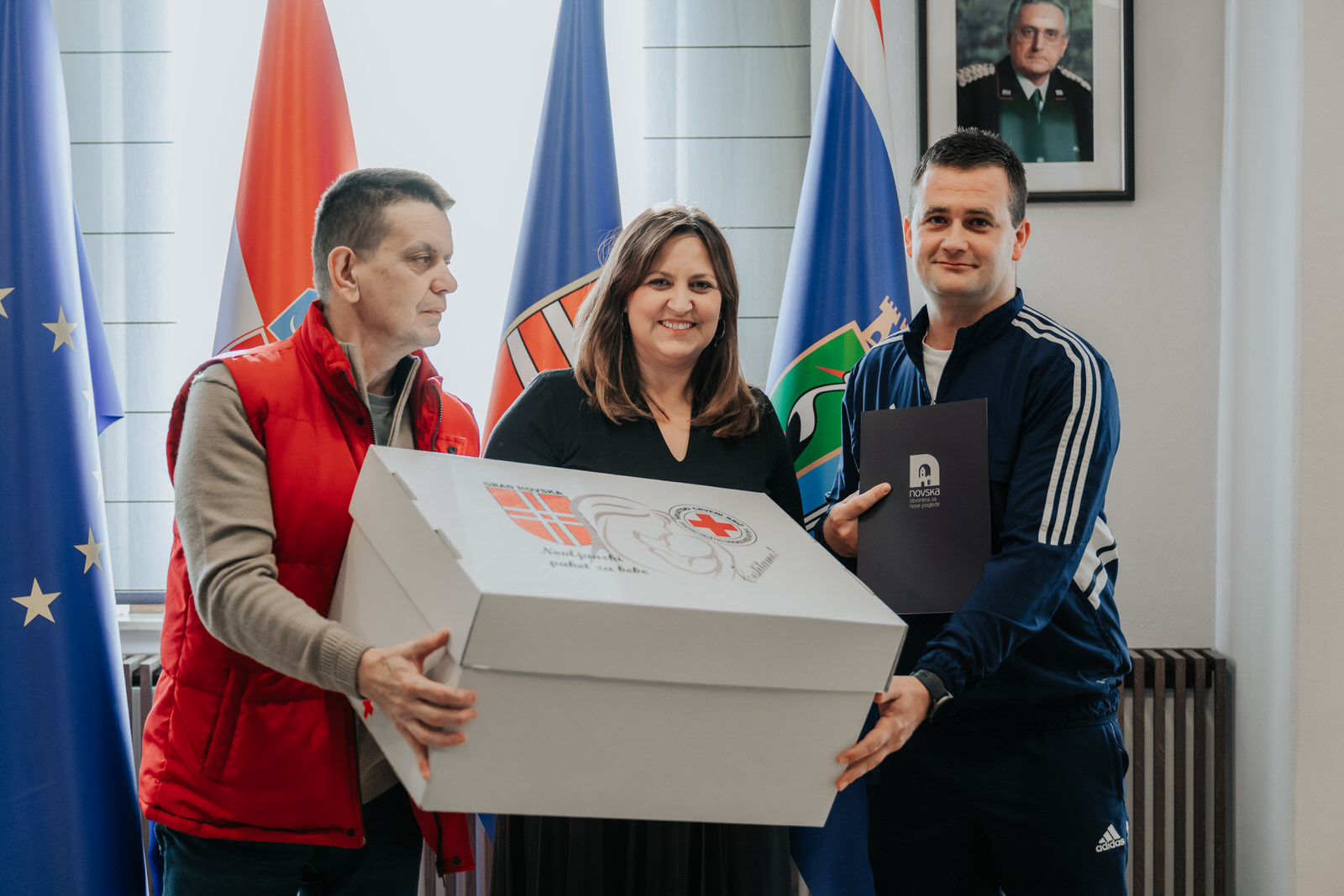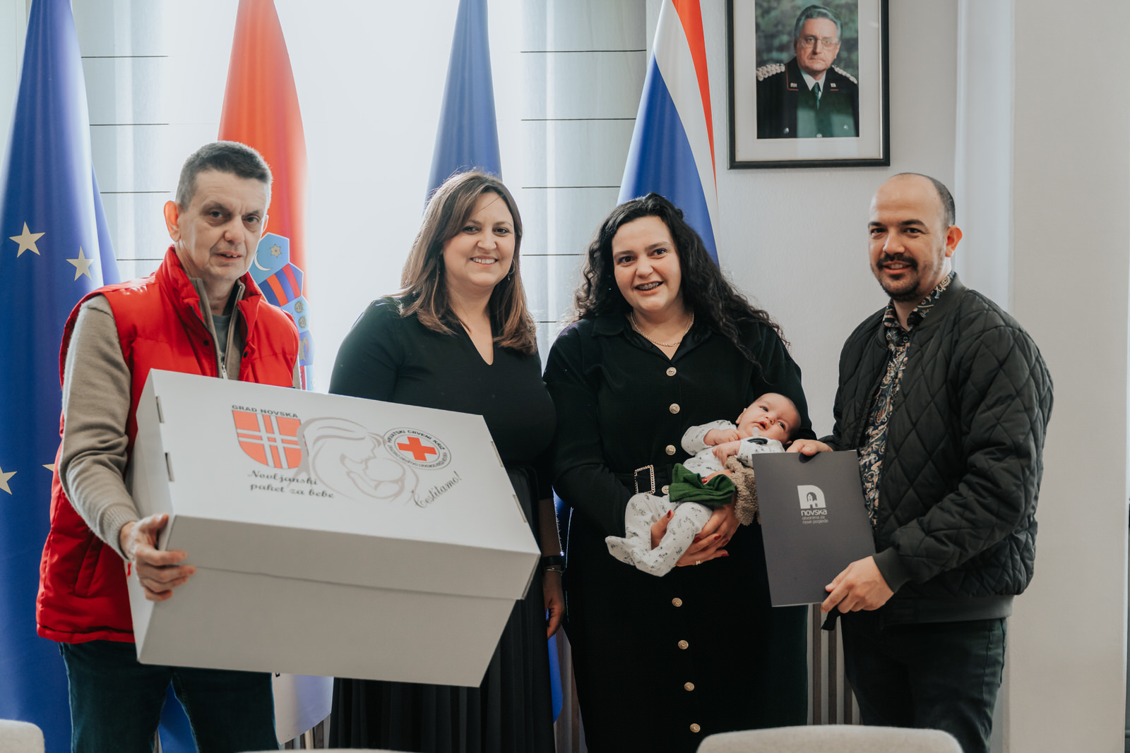Uz gradonačelnicu Kušmiš, dodjeli su prisustvovali ravnatelj Gradskog društva Crveni križ Novska Zoran Prpić, te djelatnici Grada Novske. Ravnatelj GD Crvenog križa uručio je obiteljima i materijalnu pomoć koju osigurava u suradnji s Gardom - “Novljanski paket za bebe”, u vrijednosti od 185 eura, koji sadrži osnovne higijenske i odjevne potrepštine za majke i novorođenčad. Ove mjere dio su šire strategije kojom Grad nastoji potaknuti povoljnije demografske kretanja.