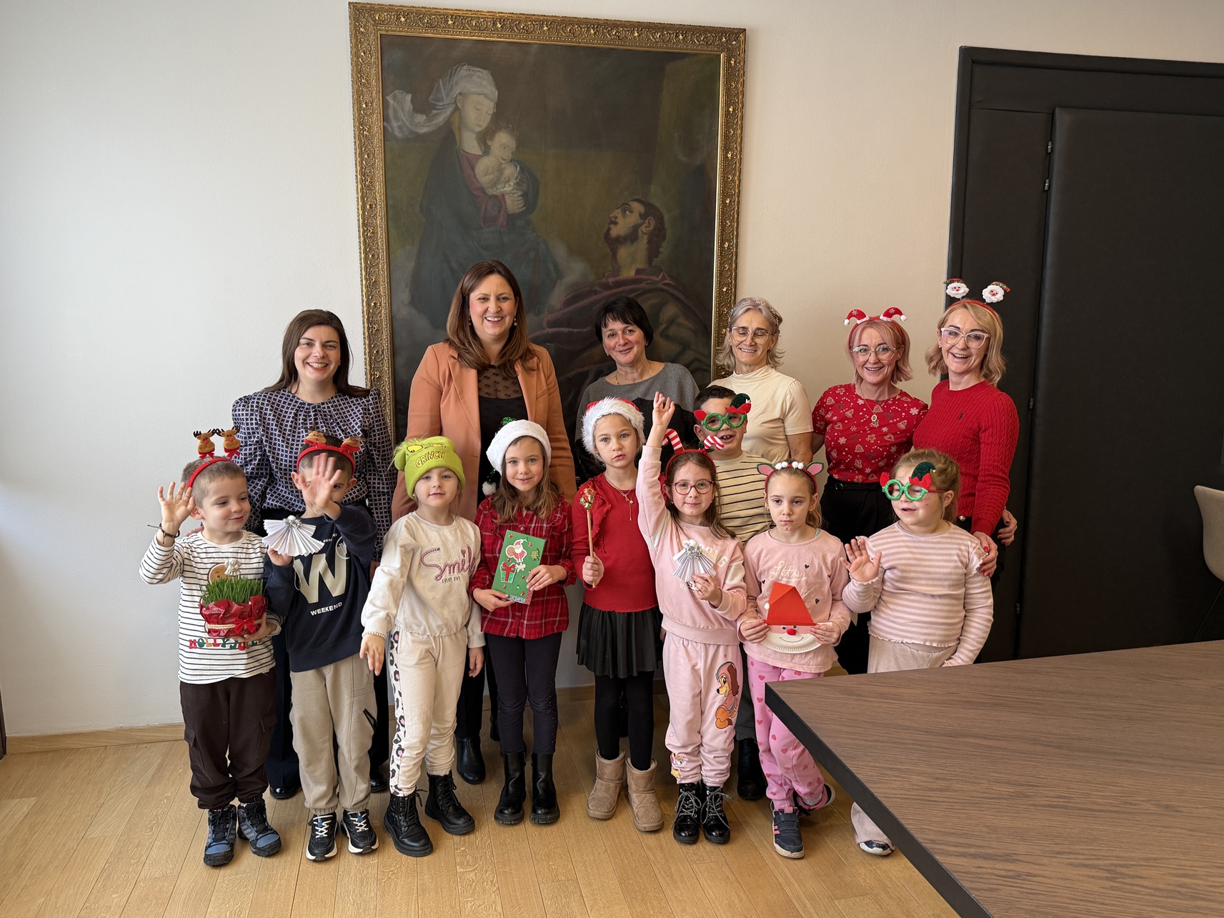 Gradonačelnici su donijeli ručno izrađene božićne čestitke kako bi poželjeli sretne nadolazeće blagdane, a pjesmom i plesom uveselili su sve okupljene.
