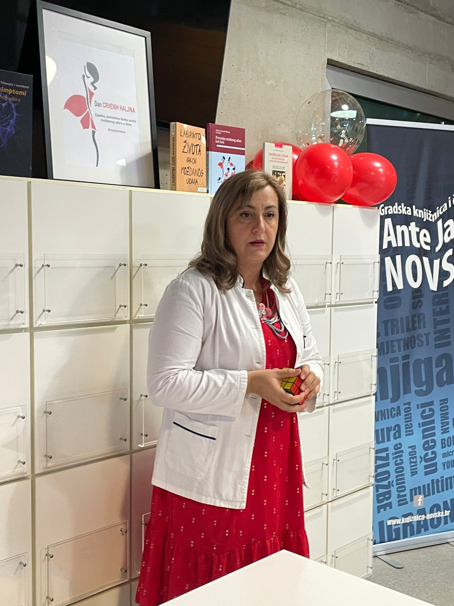 Gradska knjižnica i čitaonica Ante Jagar pridružila se obilježavanju te organizirala predavanje Milkice Ivezić Lalić, mag. physioth. na kojem je skrenula pažnju na specifičnosti moždanog udara u žena, na pogubne posljedice zanemarivanja simptoma i na nužnu potrebu promjene načina života. Zainteresiranima je izmjeren krvni tlak te šećer u krvi. Predavanju su prisustvovale i gradonačelnica Grada Novske Marija Kušmiš te zamjenica gradonačelnice Ivana Matanović, pročelnica Upravnog odjela za društvene djelatnosti, pravne poslove i javnu nabavu Sonja Marohnić-Horvat, ravnateljica Dječjeg vrtića Radost Renata Jurić te potpredsjednik Gradskog vijeća Gara Novske Siniša Kesić i gradska vijećnica Radmila Brtan.
